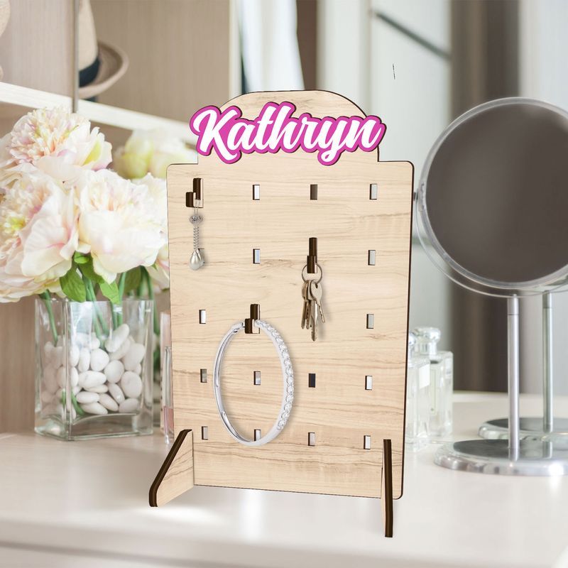The Custom Wooden Keychain or Jewelry Stand offers a natural and minimalist aesthetic that appeals to customers who prefer eco-friendly or rustic-style home decor. This type of stand can be used to hang keychains, necklaces, or small accessories, helping users keep their everyday items organized.